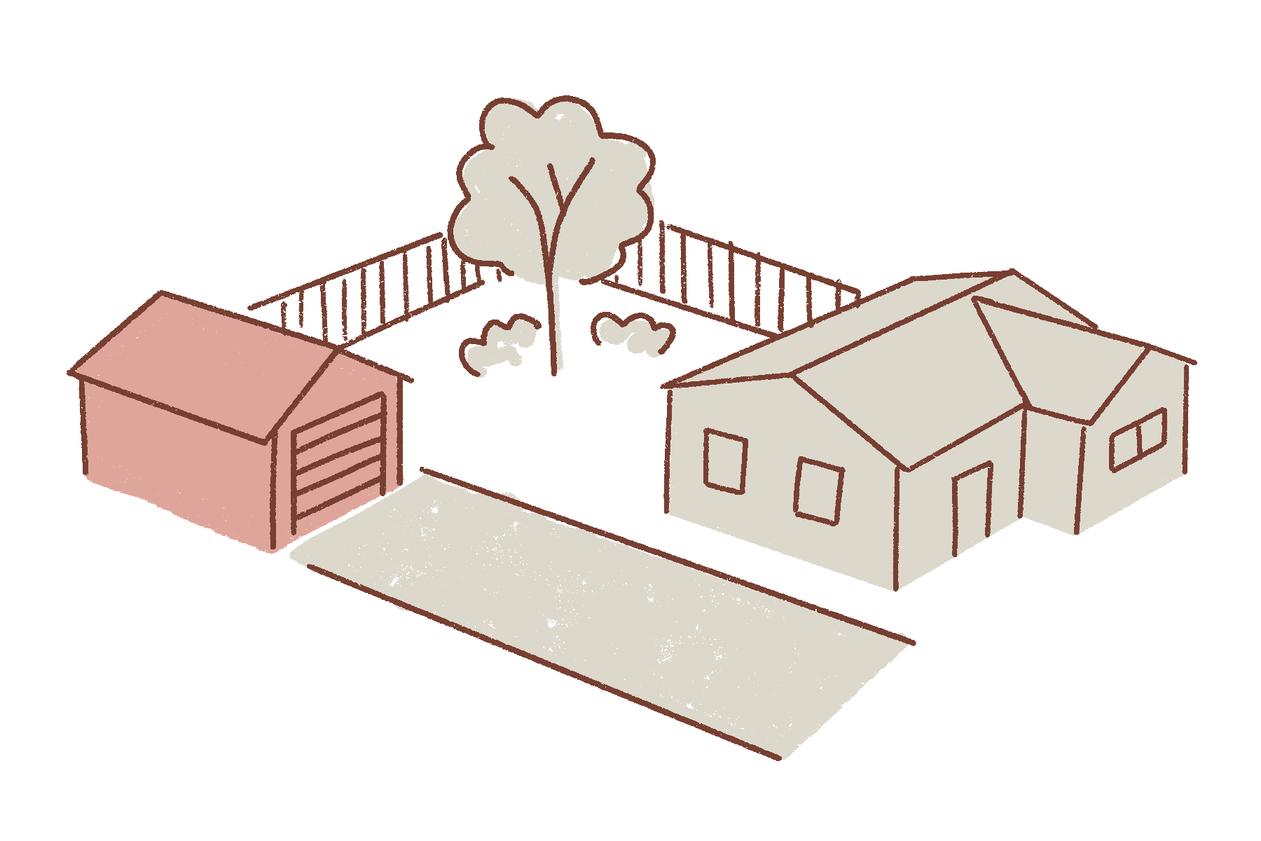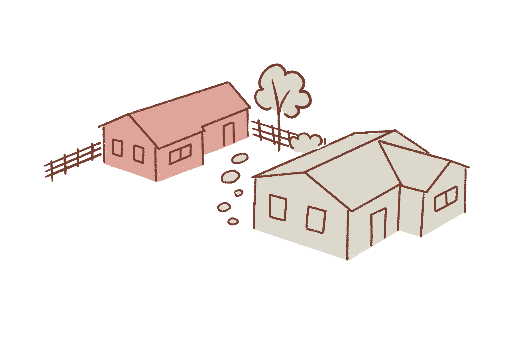 Separation between the primary building and additional unit, ideal for larger lots with more open space available.